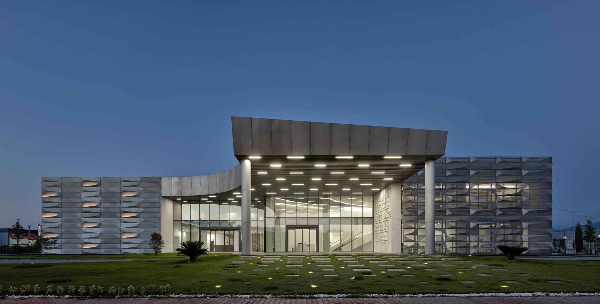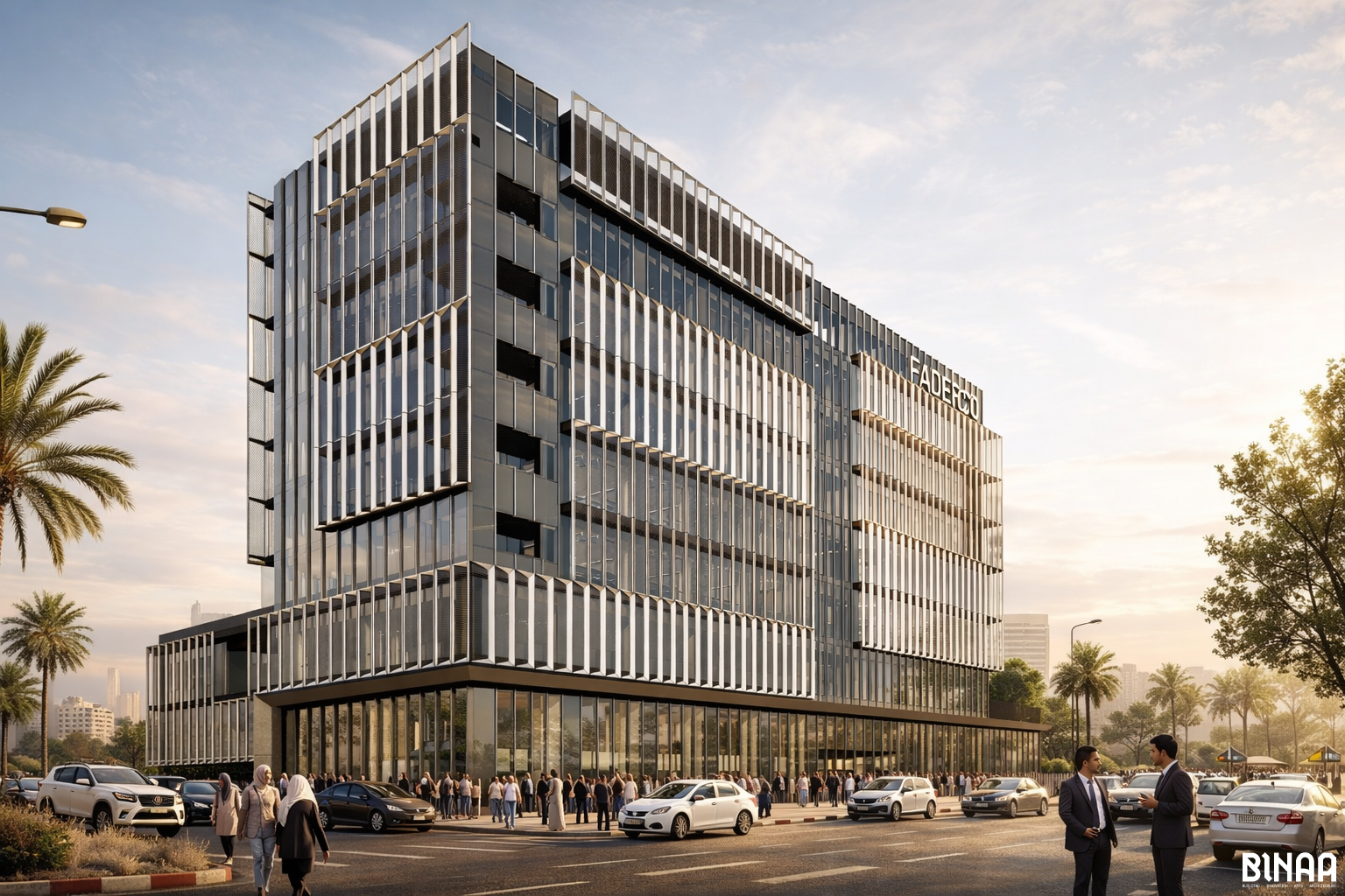 Located in Bab Ezzouar, Algeria, FADERCO HQ features a sleek curtain wall wrapped in a secondary facade of 4-meter-long, rhythmically folded aluminum panels. Adapted to the regional sun, this layered envelope creates shifting light and shadow patterns all day. By filtering daylight for optimal solar control, it ensures interior comfort. Inside, the dynamic building comprises a double-height ground floor with social areas, typical offices, a management floor, and open terraces.